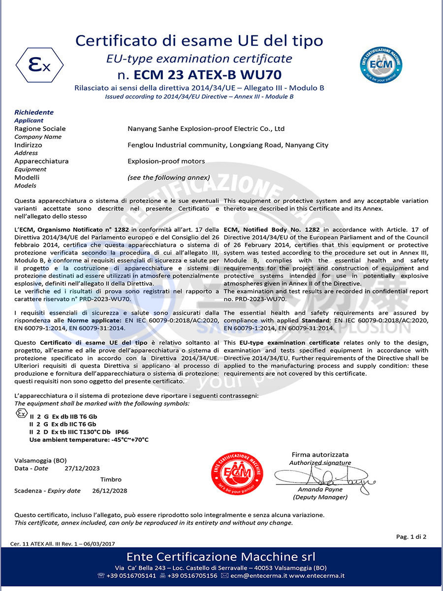 防爆電機ATEX認證