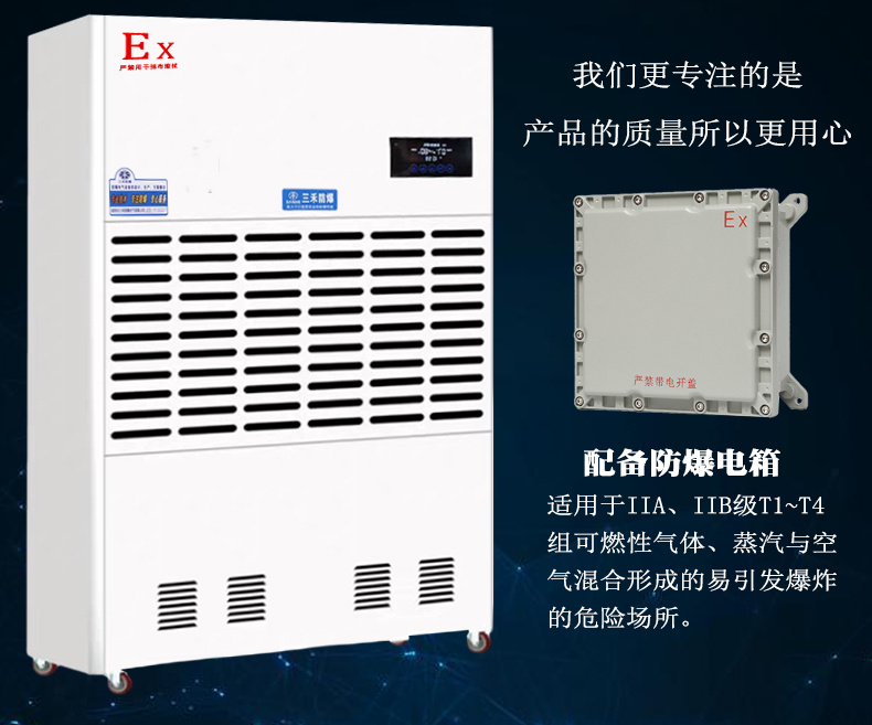 3、防爆除濕機(jī)經(jīng)國(guó)-家防爆電氣產(chǎn)品質(zhì)量監(jiān)督檢查測(cè)試中心檢測(cè)合格,取得了防爆合格證。